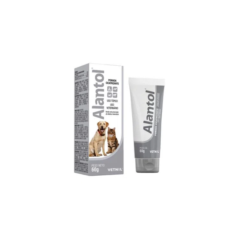 <p>A Alantol é uma pomada cicatrizante da Vetnil exclusiva para uso em cães, gatos e equinos. Ela serve para o tratamento de lesões cutâneas, feridas acidentais ou cirúrgicas, abcessos, escoriações de decúbito, ulcerações de superfície e queimaduras, somente com supervisão de um médico-veterinário.</p>
