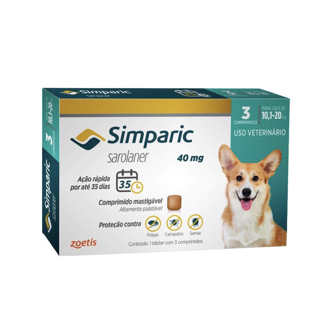 ANTIPULGAS E CARRAPATOS ZOETIS SIMPARIC 40MG C/ 3 COMPRIMIDOS