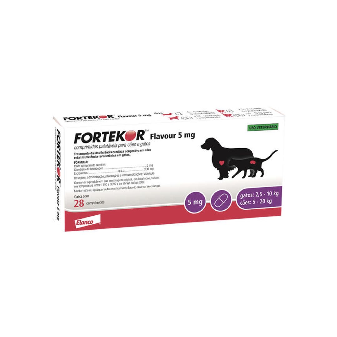 <p>Fortekor™ Flavour é indicado para tratamento da Insuficiência Cardíaca Congestiva em cães e Doença Renal Crônica em gato</p>