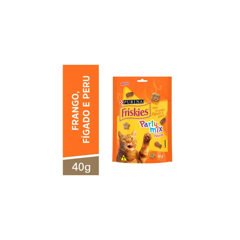 PETISCO FRISKIES PARTY MIX FRANGO, FÍGADO E PERU PARA GATOS 40G