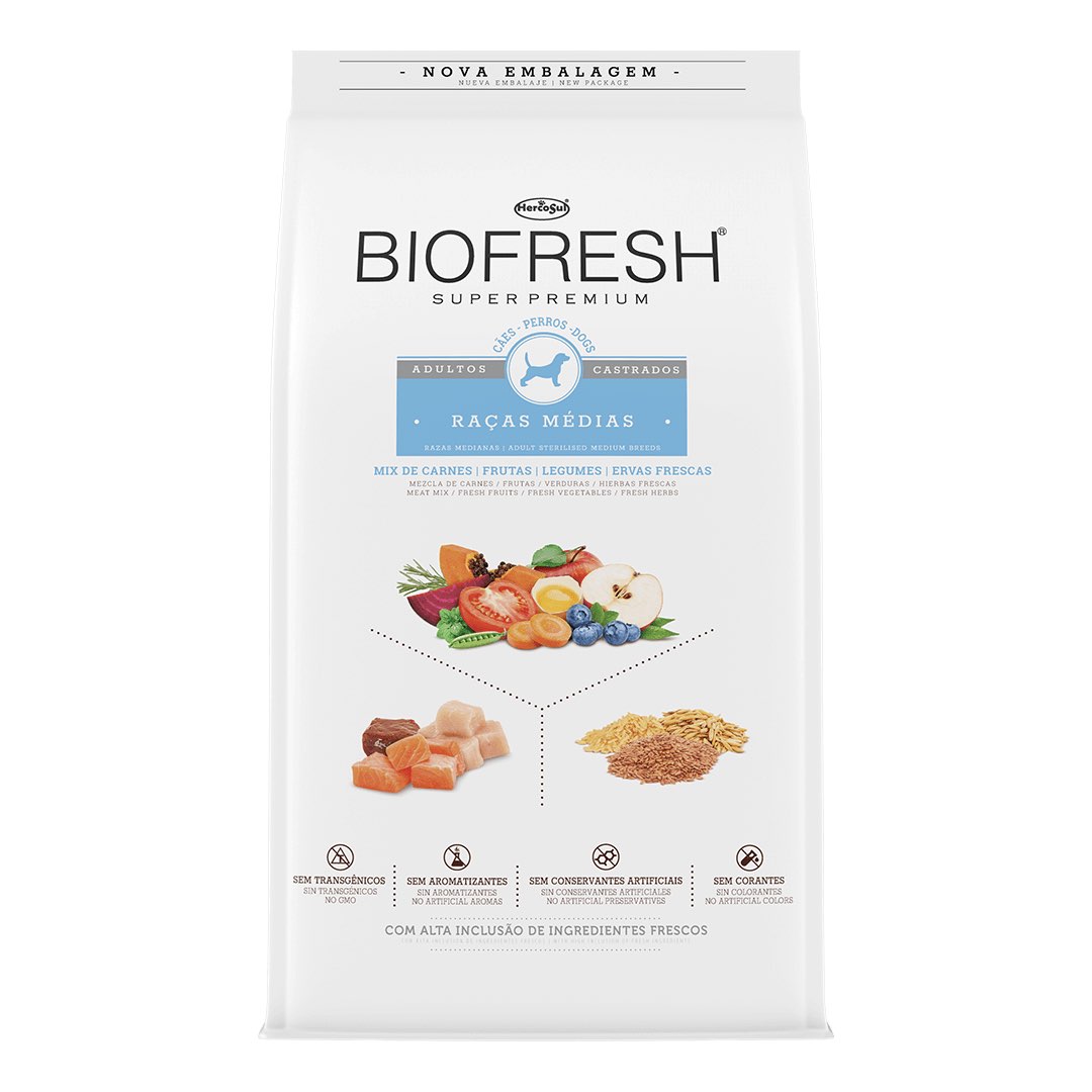 RAÇÃO BIOFRESH PARA CÃES ADULTOS CASTRADOS RAÇAS MÉDIAS