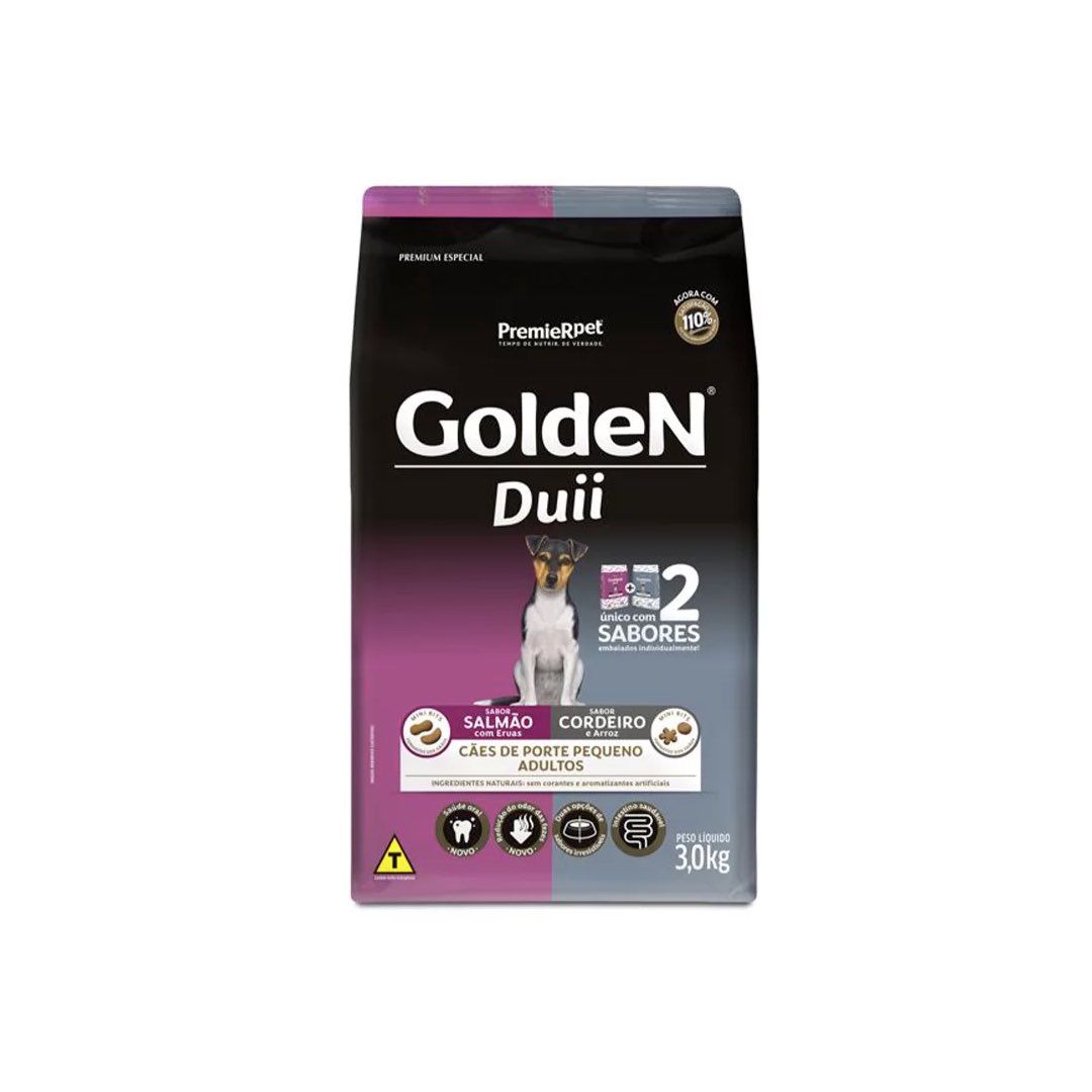 RAÇÃO GOLDEN CÃES ADULTOS DUII SALMÃO E CORDEIRO MINI BITS 3KG