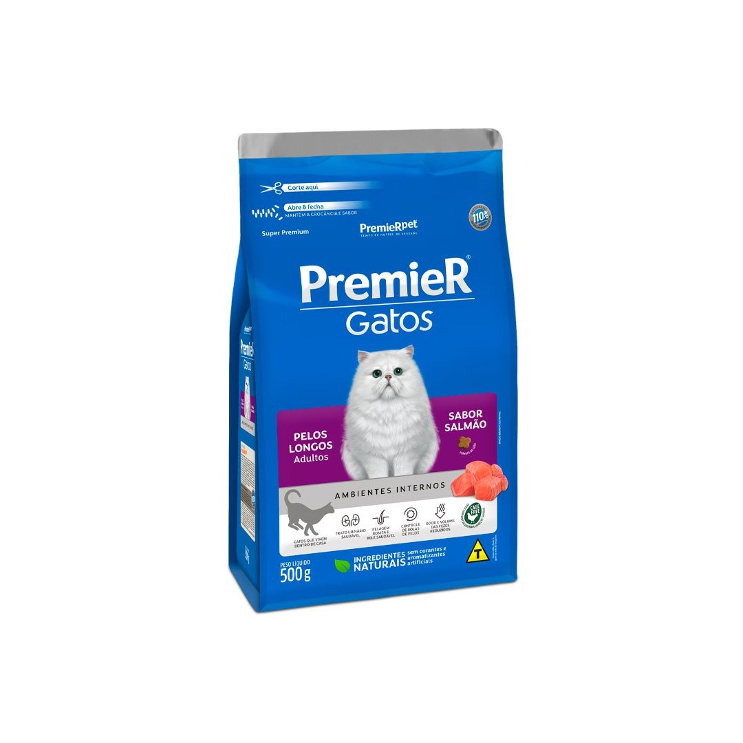 RAÇÃO PREMIER GATOS ADULTOS PELOS LONGOS SALMÃO