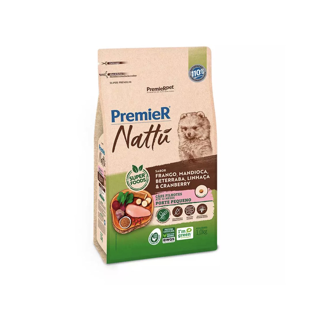 RAÇÃO PREMIER NATTU CÃES FILHOTES PORTE PEQUENO SABOR MANDIOCA