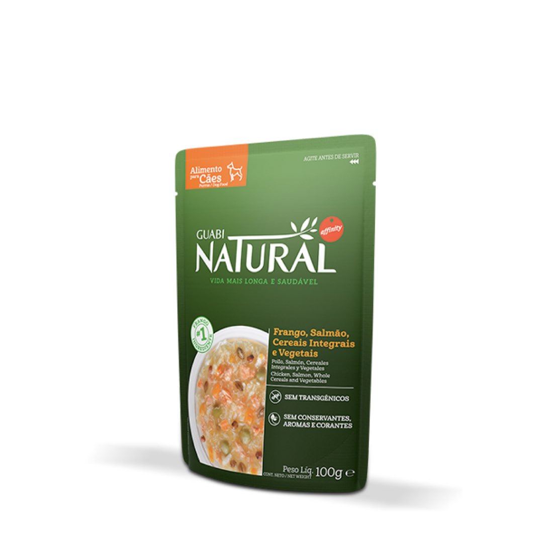 RAÇÃO ÚMIDA GUABI NATURAL SACHÊ CÃO ADULTO FRANGO, SALMÃO, CEREAIS INTEGRAIS E VEGETAIS 100G