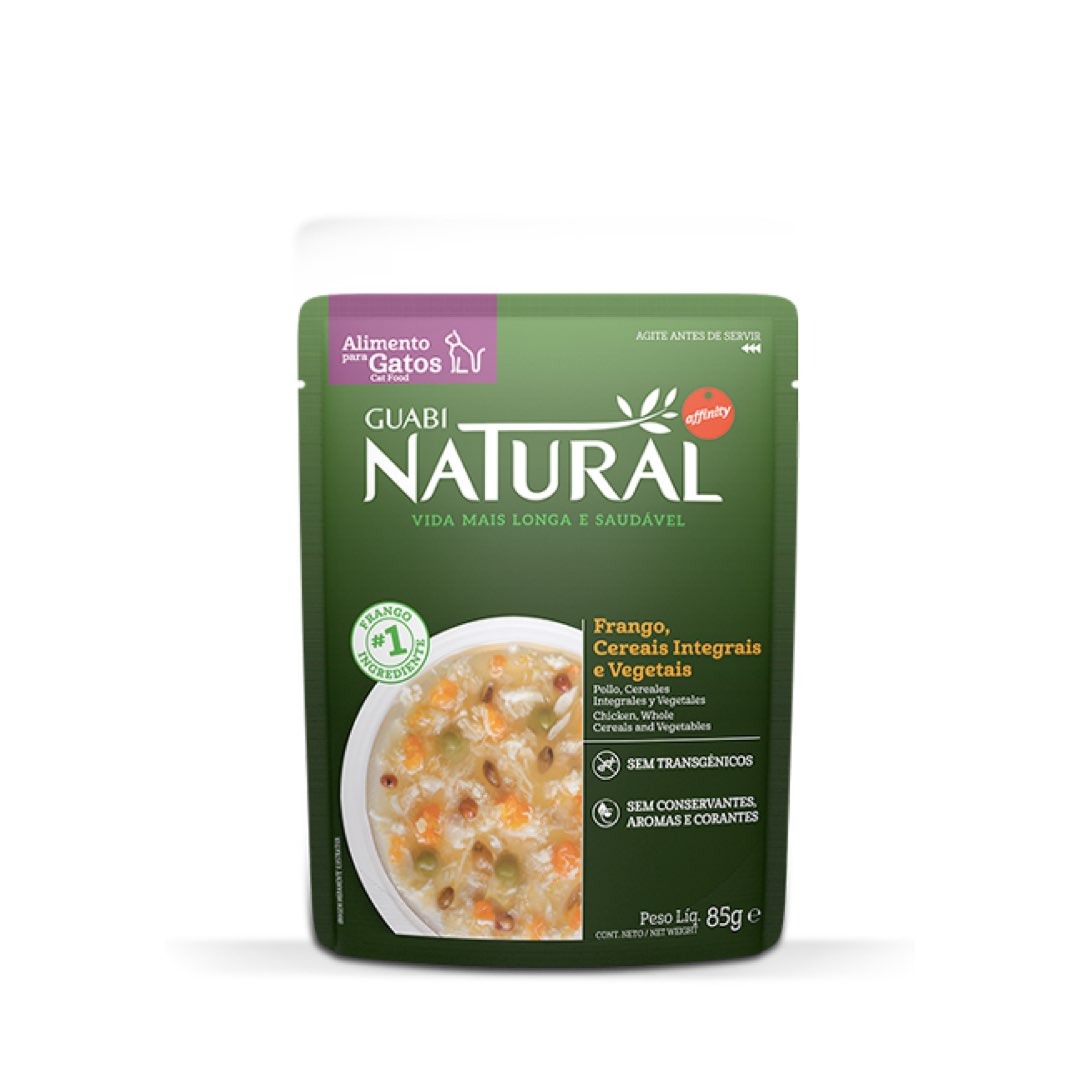 Os sachês Guabi Natural contêm ingredientes naturais, como vegetais e elevada quantidade de carnes selecionadas cozidas ao vapor. Assim como toda a linha Guabi Natural, foi desenvolvida por especialistas em nutrição e aprovada por Veterinários para fornecer toda a qualidade e saúde que os pets precisam.