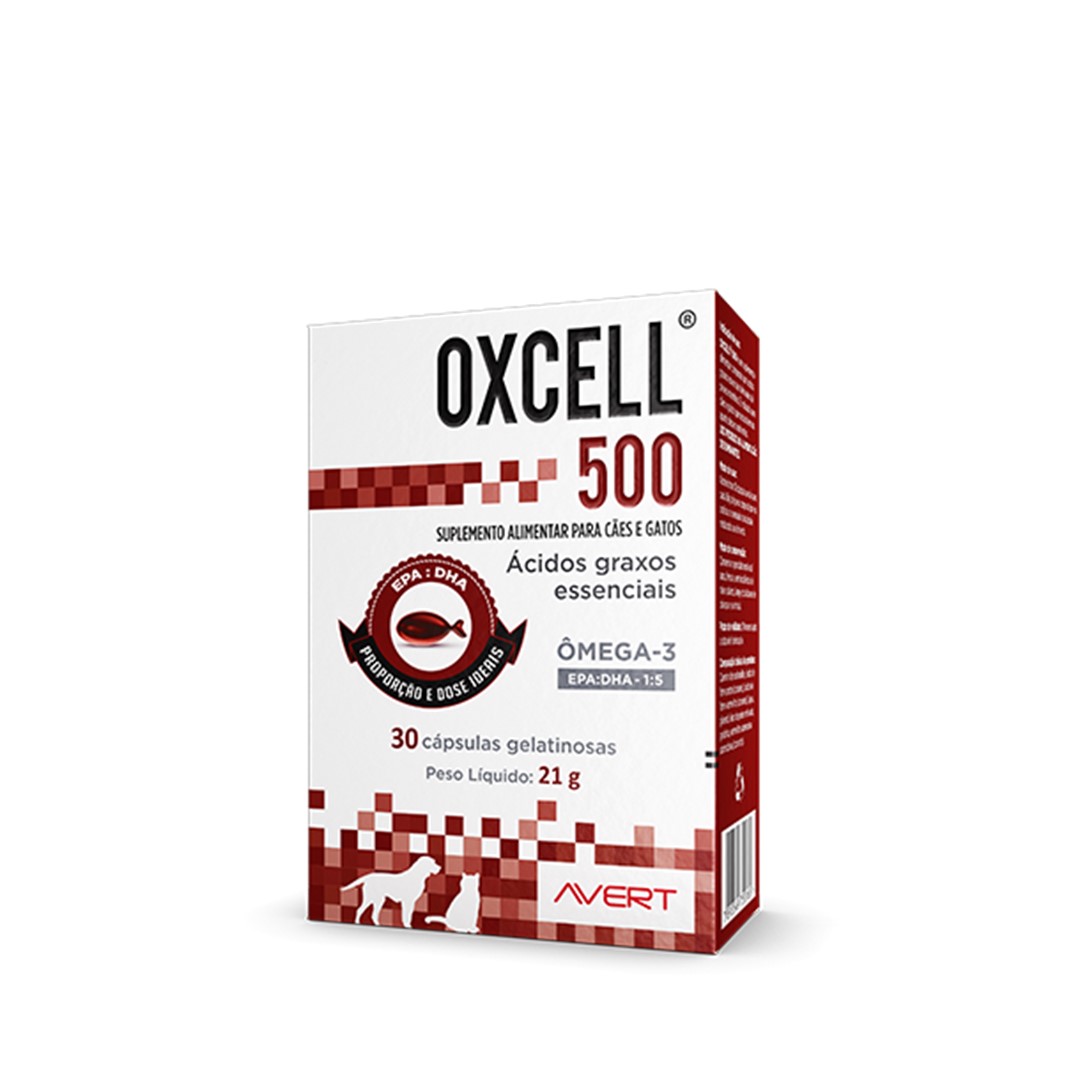 <p>OXCELL 500 é um suplemento alimentar composto por ácidos graxos essenciais derivados de peixes marinhos. É indicado para cães e gatos que necessitem um aporte nutricional desses nutrientes.</p>